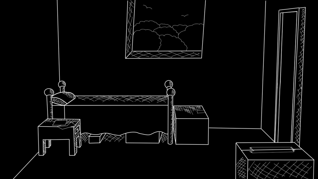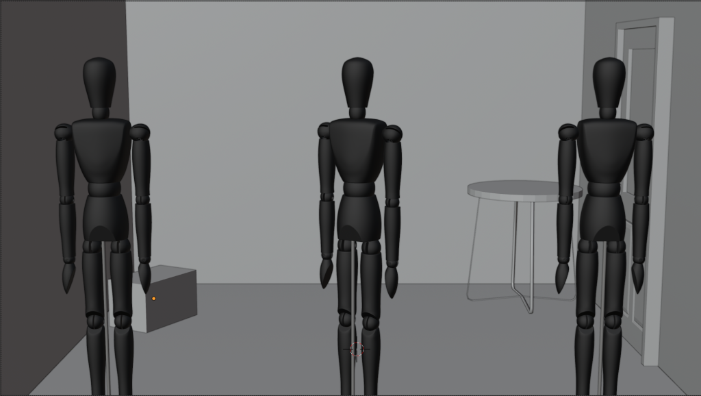 Ok, maybe not so sane on my part, but it did what I wanted it to do! Once I had the world set up the way I wanted to, using shapes in place of different objects I knew I wanted in the room, I screenshot every scene I needed and used those screenshots as reference images for my actual sketches.